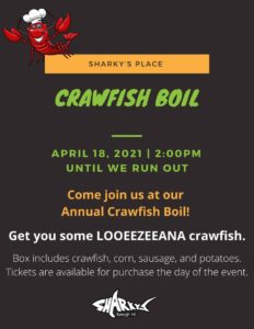 Sharky’s Annual Crawfish Boil w/ Mel Melton & The Wicked Mojos! Calendar Add to Calendar Add to Timely Calendar Add to Google Add to Outlook Add to Apple Calendar Add to other calendar Export to XML When: April 18, 2021 @ 2:00 pm 2021-04-18T14:00:00+00:00 2021-04-18T14:15:00+00:00 By Katie| 2021-04-13T18:56:55-04:00 August 3rd, 2017|Comments Off on Sharky’s Annual Crawfish Boil w/ Mel Melton & The Wicked Mojos! Share This Story, Choose Your Platform! FacebookTwitterLinkedinRedditTumblrGoogle+PinterestVkEmail About the Author: Katie